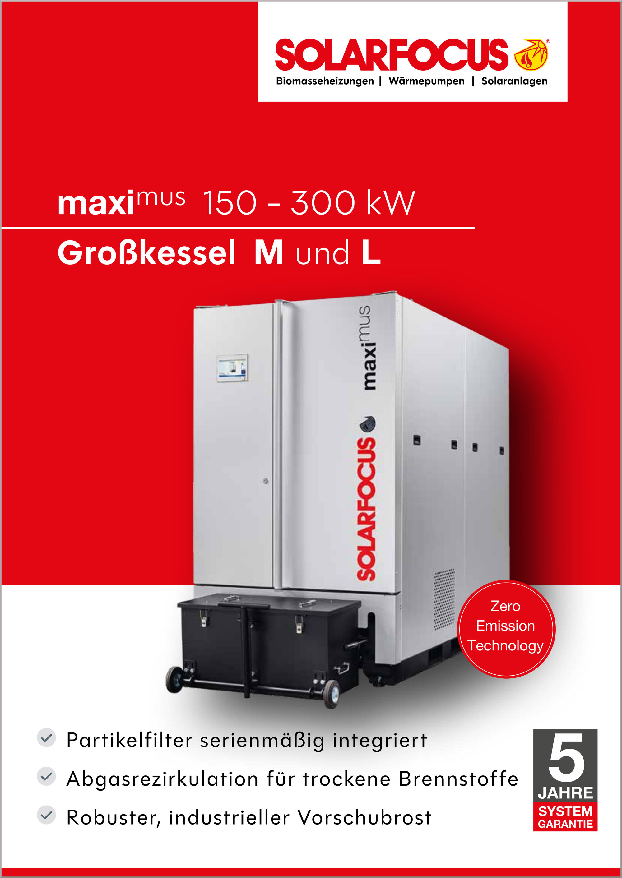 Die richtige Auswahl des Heizungssystems ist eine wichtige Entscheidung für viele Jahre. Der Pellets- oder Hackgutkessel maximus ist der Wärmeerzeuger für große Anwendungsbereiche und besonders für industrielle Anlagen, Mehrfamilienwohnbau und für Kaskadenlösungen geeignet.