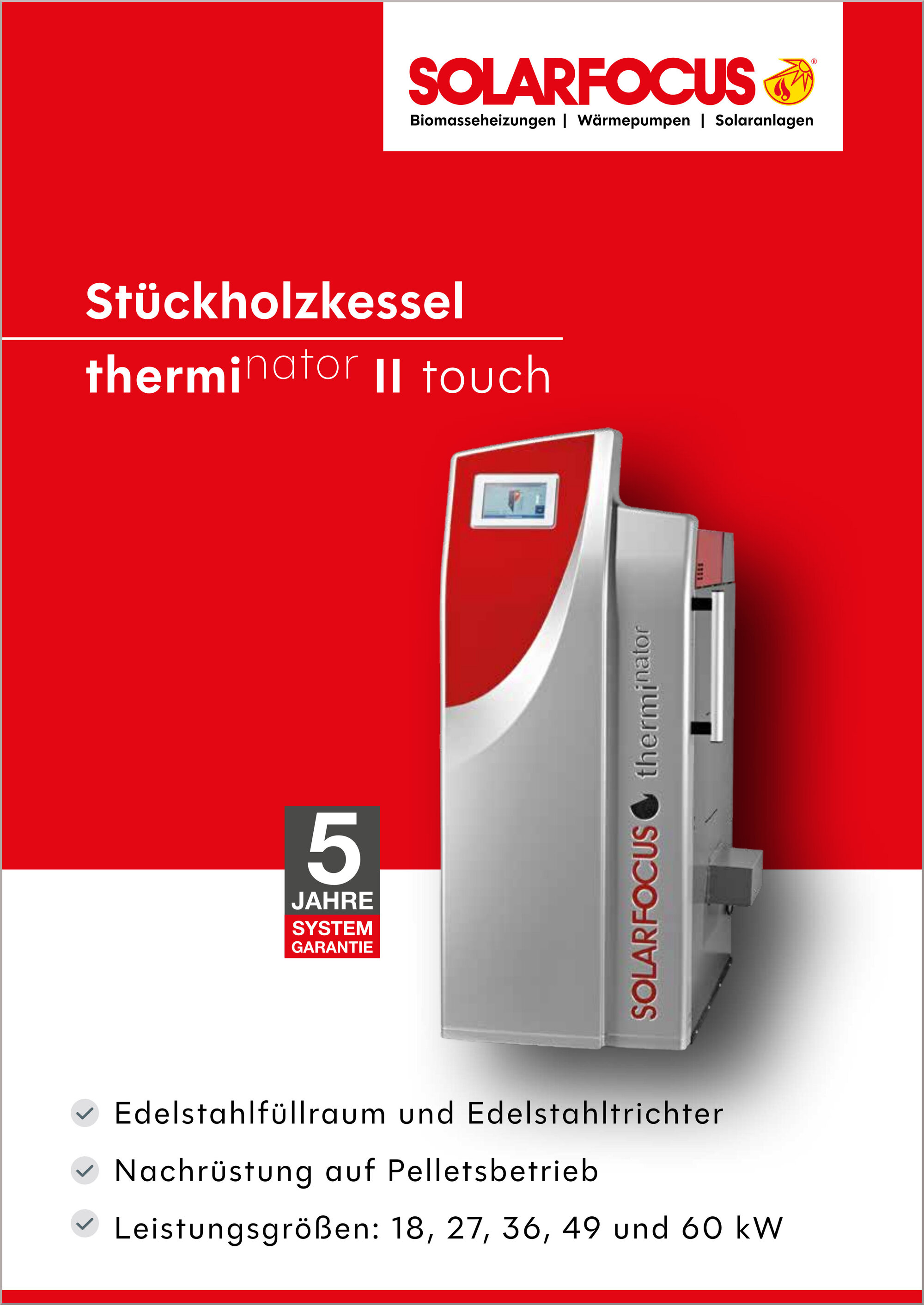 Scheitholz ist derzeit der preiswerteste Brennstoff. Durch die regionale Verfügbarkeit haben Sie Ihr sicheres Plus an Unabhängigkeit, Unerschöpflichkeit und Umweltfreundlichkeit. SOLARFOCUS bietet Ihnen durch 30 Jahre Erfahrung in der Entwicklung von Scheitholzkessel ein perfekt ausgereiftes Produkt.