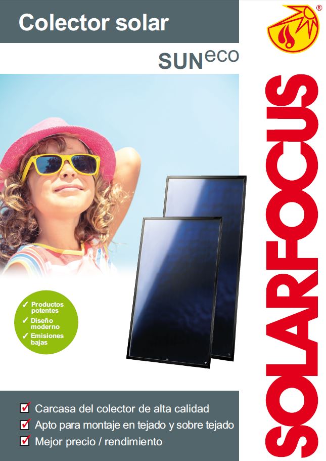 El SUNeco es un placa solar plano para montaje vertical o horizontal. Gracias de tubos soldados por ultrasonido, absorbedor de superficie completa de aluminio y cobre altamente selectivo con chapas deflectoras de calor y omega esta colector tiene mejores valores de rendimiento. La transmisión se lleva a cabo mediante el principio de arpa doble. En el tubo de distribución hay un sistema de cierre que se encarga de la ventilación más rápida del colector en caso de llenado.