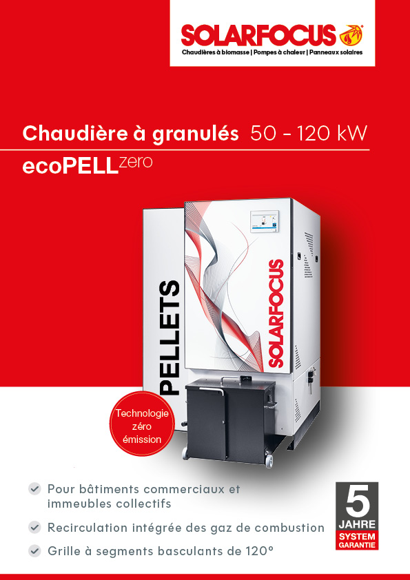 La chaudière à granulés ecoPELLzero (50 à 120 kW) de SOLARFOCUS est une chaudière biomasse à très faibles émissions, spécialement conçue pour les bâtiments collectifs, tertiaires et industriels en France.