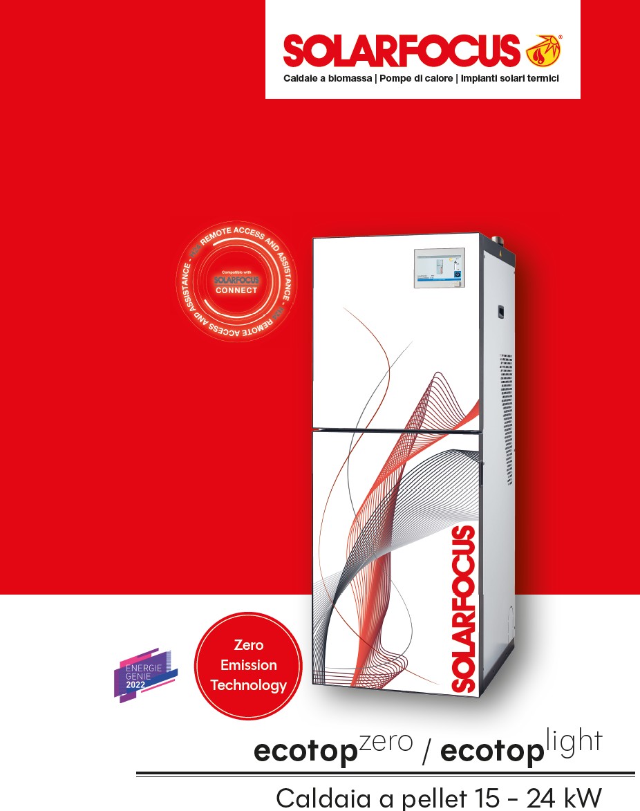 Le SOLARFOCUS ecotopzero ed ecotoplight sono state progettate per mercati in cui sono richieste emissioni bassissime. ecotopzero è dotata di serie di un filtro antipolvere che minimizza le emissioni fin sotto i limiti misurabili. ecotoplight raggiunge anche senza filtro 5 stelle ambientali secondo i severi parametri di emissione del Decreto 7 Novembre 2017, N. 186.